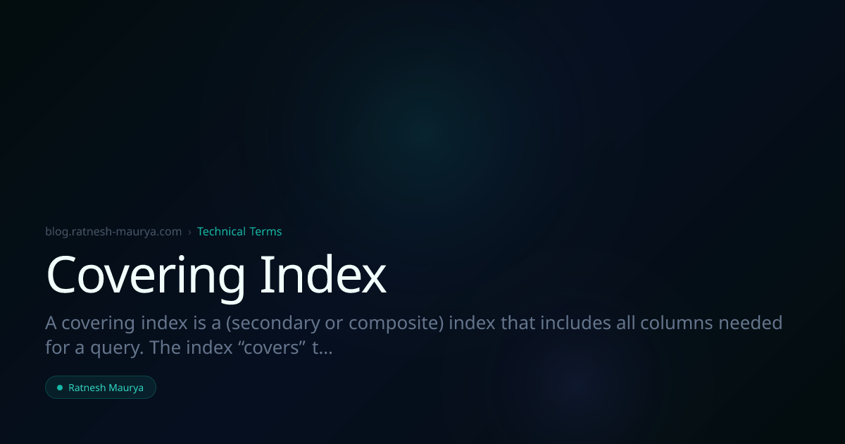 A covering index is a (secondary or composite) index that includes all columns needed for a query. The index “covers” the query, so the database can retrieve all data from the index itself without accessing the table (clustered index).