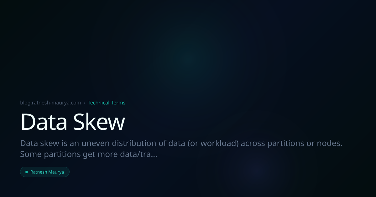 Data skew is an uneven distribution of data (or workload) across partitions or nodes. Some partitions get more data/traffic than others.
