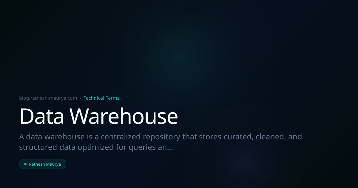 A data warehouse is a centralized repository that stores curated, cleaned, and structured data optimized for queries and reporting, typically in a columnar format.