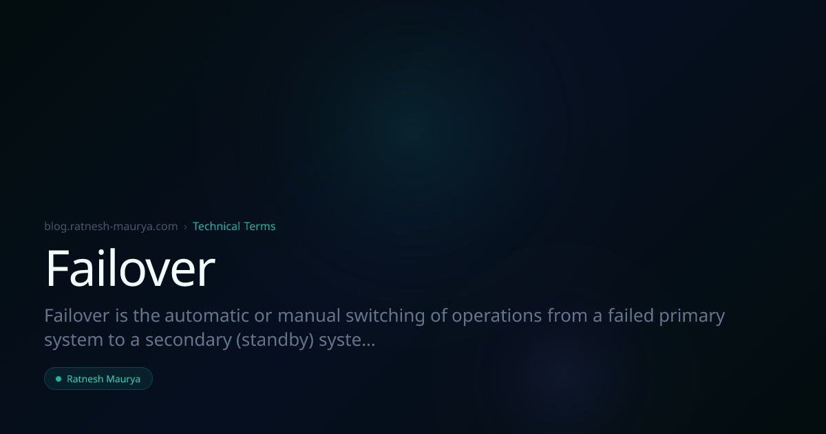 Failover is the automatic or manual switching of operations from a failed primary system to a secondary (standby) system.