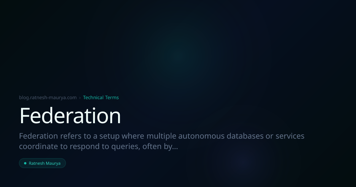 Federation refers to a setup where multiple autonomous databases or services coordinate to respond to queries, often by delegating parts of a query to different sources, but without a shared storage layer.