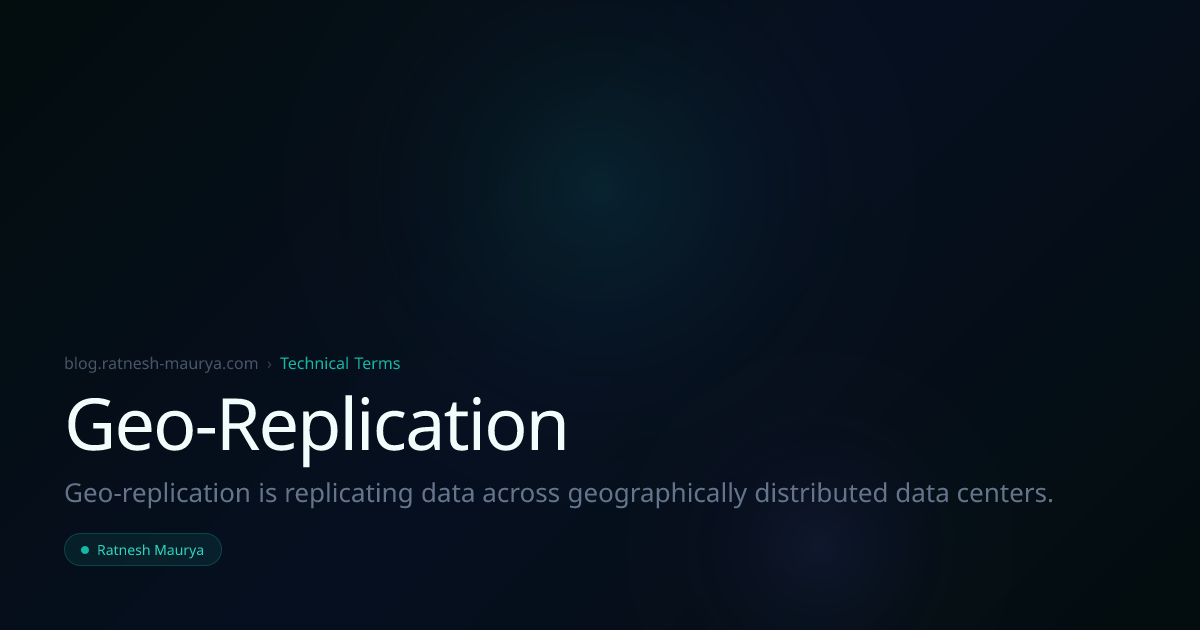 Ensures data is available near where it’s needed globally and provides disaster recovery. Usually asynchronous to tolerate high latencies, leading to eventual consistency across regions.