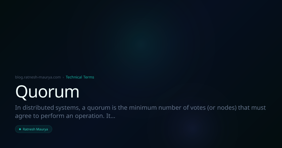 In distributed systems, a quorum is the minimum number of votes (or nodes) that must agree to perform an operation. It is a technique to ensure consistency during reads and writes. For example, in a system of N nodes, one might require at least ⌈N/2⌉ nodes to agree (a majority quorum) to commit a change.