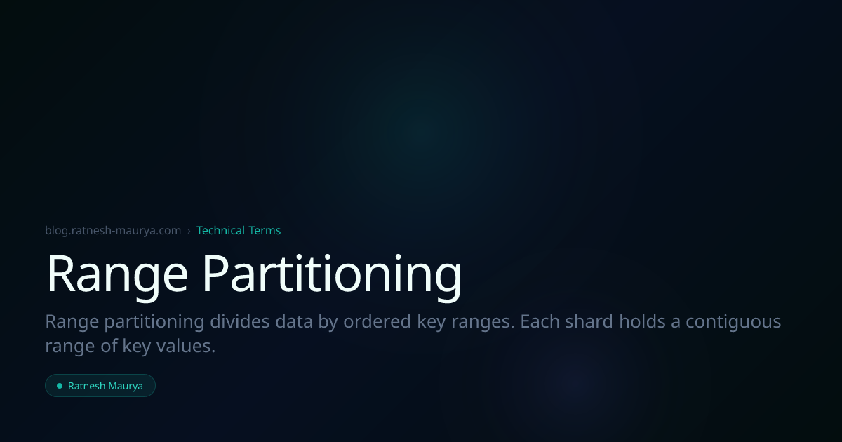 Range partitioning divides data by ordered key ranges. Each shard holds a contiguous range of key values.