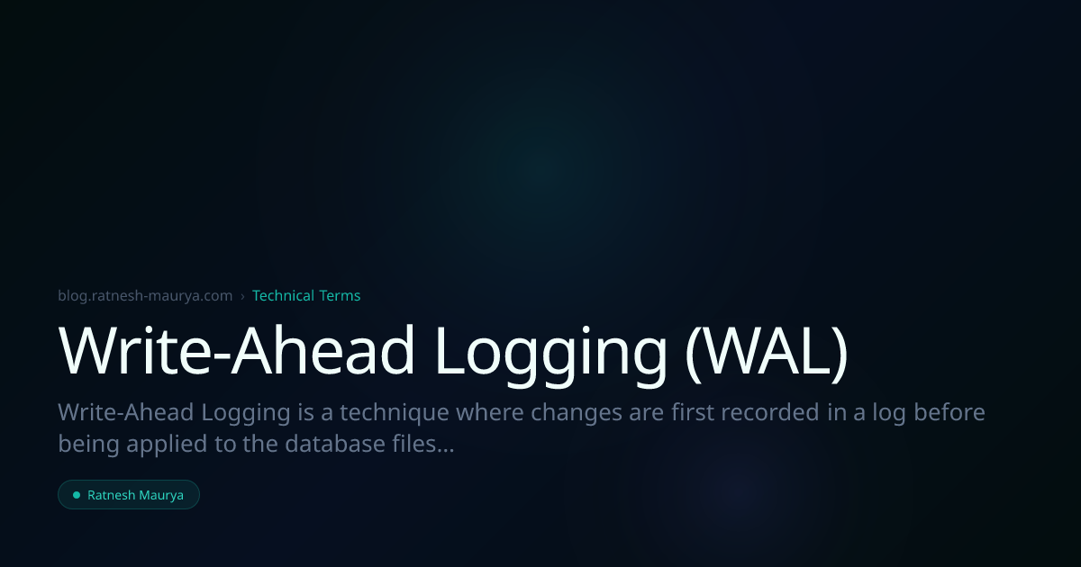 Write-Ahead Logging is a technique where changes are first recorded in a log before being applied to the database files[[27]](https://en.wikipedia.org/wiki/Write-ahead_logging "Write-ahead logging - Wikipedia"). It ensures atomicity and durability.