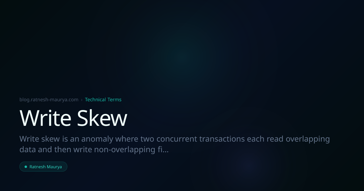 Write skew is an anomaly where two concurrent transactions each read overlapping data and then write non-overlapping fields, resulting in an overall invalid state despite no single column being overwritten.